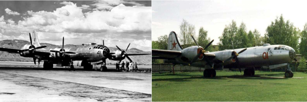 Ще одним прикладом нав’язаної радянською владою вторинності є історія створення літака Ту-4. Під кінець Другої Світової війни на території СРСР сіло кілька американських бомбардувальників B-29. Сталін наказав Туполєву скопіювати цей літак замість продовжувати власну розробку Ту-10. В Ту-4 були скопійовані навіть такі деталі як підставка для банки з-під кока-коли (якої не було в СРСР) та попільниця (радянським пілотам заборонялось палити цигарки в польоті, на відміну від американських).